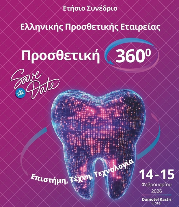 Η εταιρεία Ι. Τσαπράζης ΑΕ με χαρά συμμετέχει και φέτος στο Ετήσιο Συνέδριό της “Προσθετική 360°: Επιστήμη, Τέχνη, Τεχνολογία” το οποίο θα πραγματοποιηθεί στις 14-15 Φεβρουαρίου 2026, στο ξενοδοχείο Domotel Καστρί.